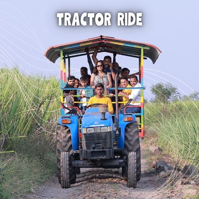 At Aroha Srushti Farms, you can enjoy the peaceful life of the countryside. Experience traditional farm activities like riding on a tractor or bullock cart, and enjoy being surrounded by nature, away from the busy city.